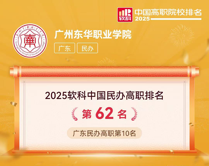 近日,高等教育专业评价机构软科正式发布“2025软科中国高职院校排名”,九游体育官网位列广东省民办高职院校第10名,全国民办高职院校总排名第62名,跻身全国民办高职院校前列。