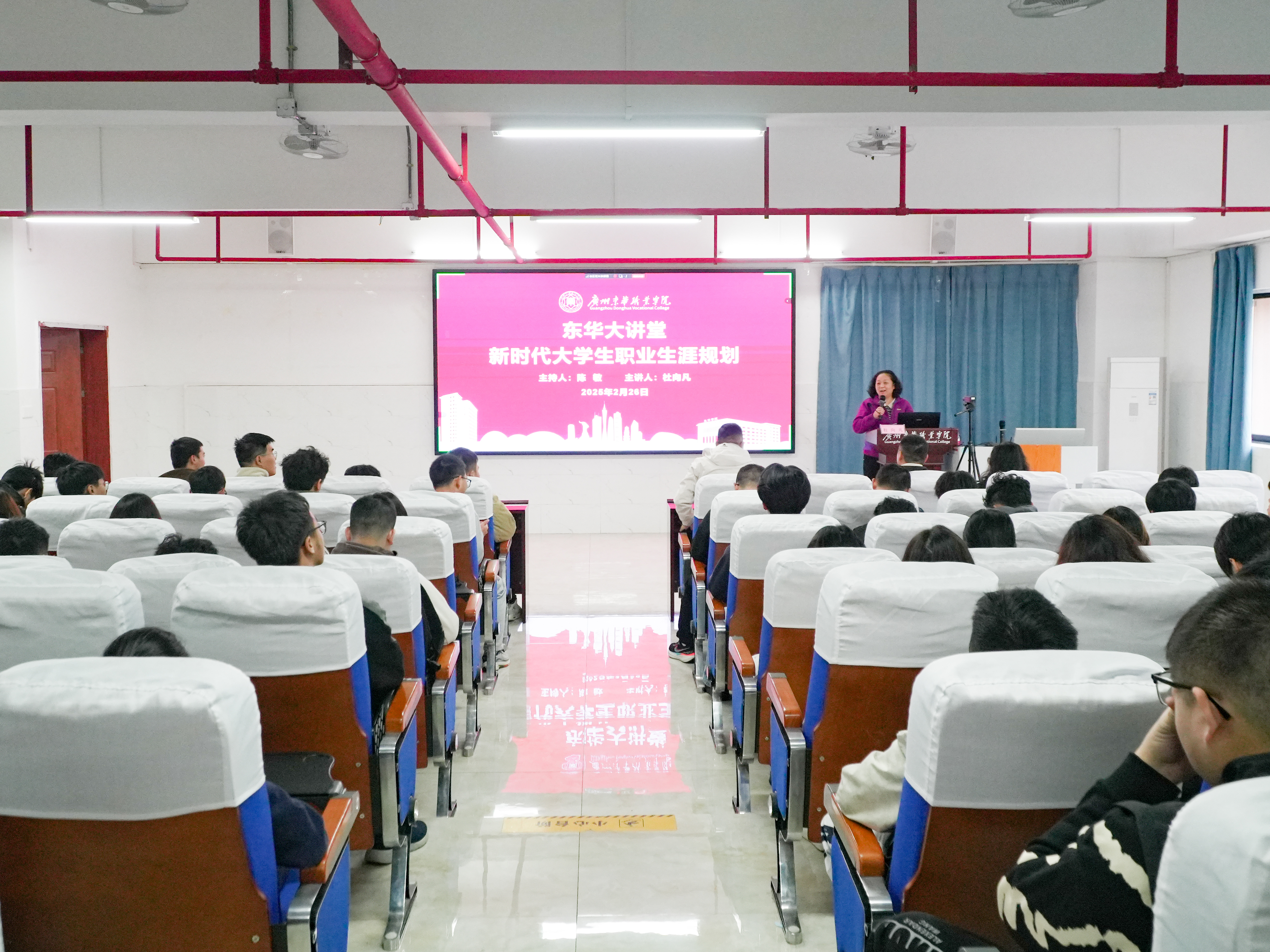 2月26日,实训大楼内气氛热烈,东华大讲堂第一讲——《新时代大学生职业生涯规划》成功举办。