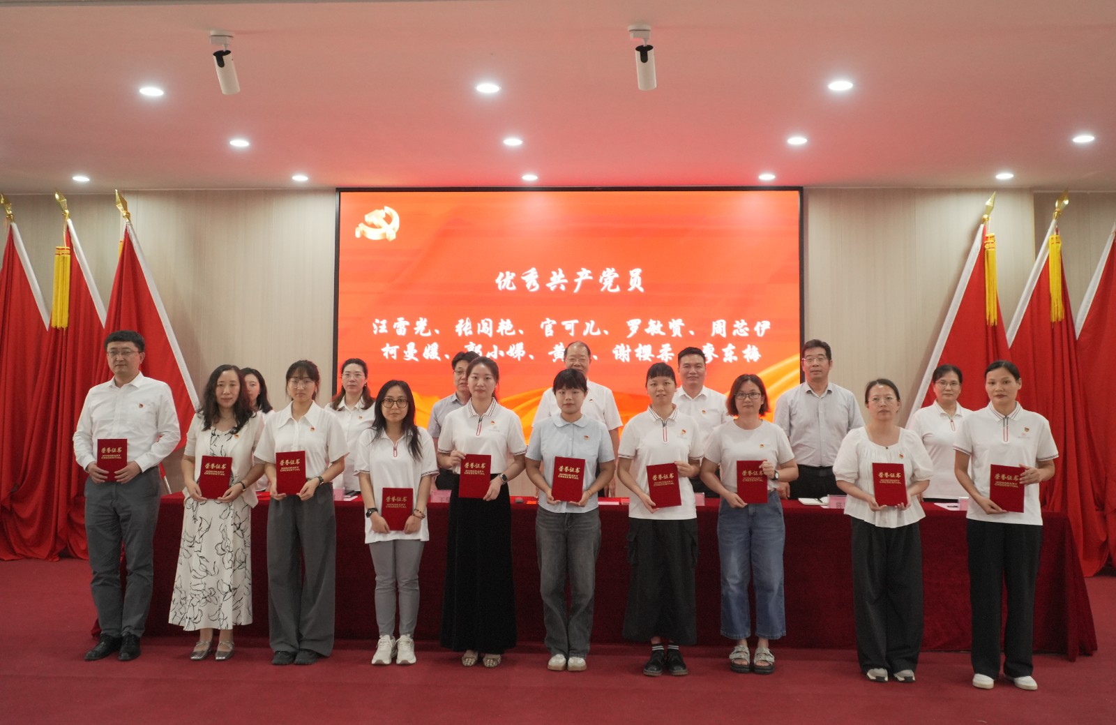 学校领导向受党委表彰的“两优一先”代表颁奖。