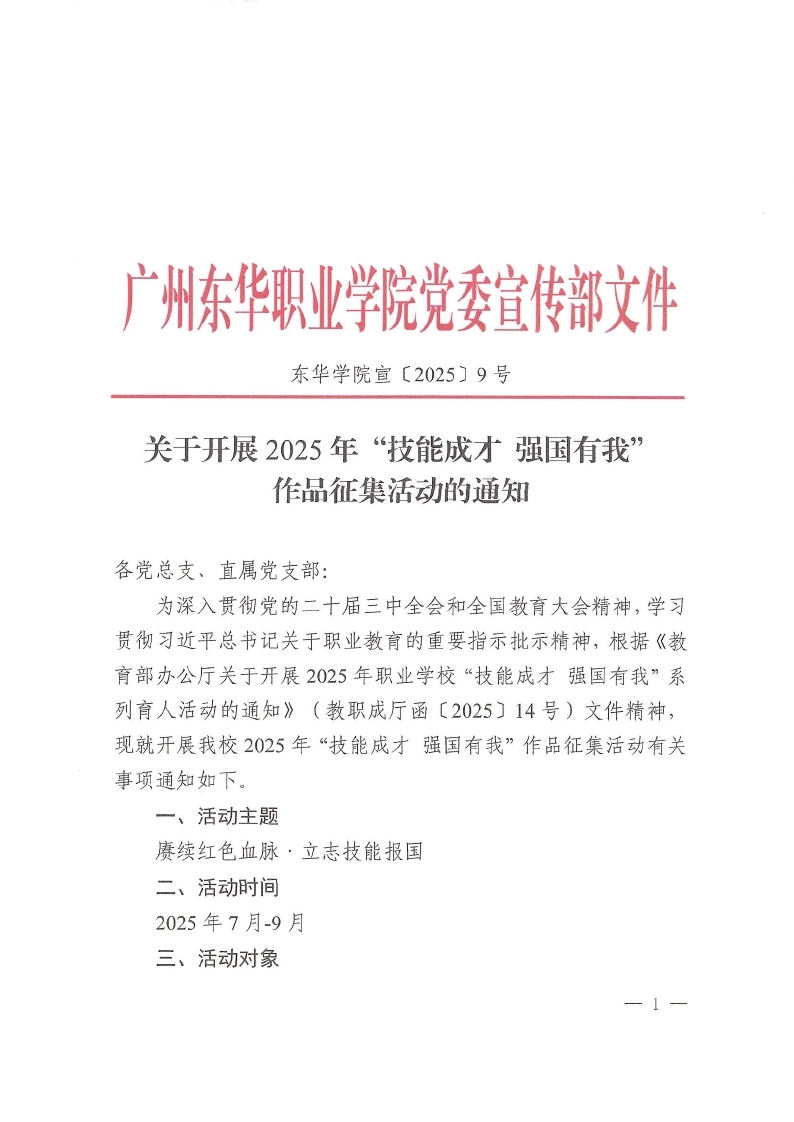 关于开展2025年“技能成才 强国有我”作品征集活动的通知