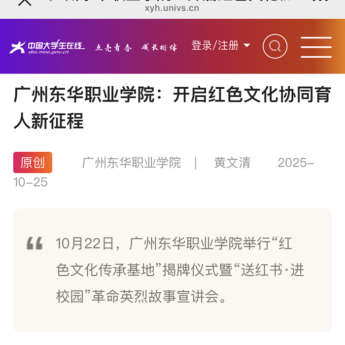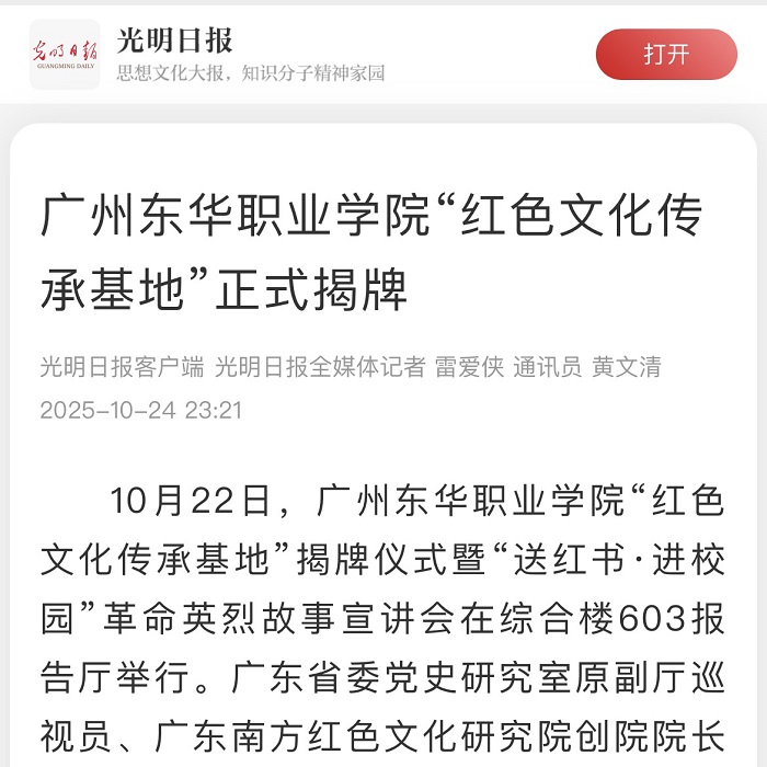 近日,九游体育官网“红色文化传承基地”揭牌仪式暨“送红书·进校园”革命英烈故事宣讲活动引起社会广泛关注。光明日报客户端、教育部中国大学生在线、中宣部“学习强国”广东学习平台、中国教育在线等中央、省部级平台对活动作了宣传报道,引发社会各界对红色文化传承与青年思想政治教育深度融合的积极关注与高度认可,进一步提高了学校的社会影响力。