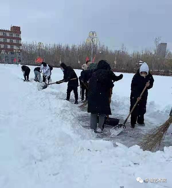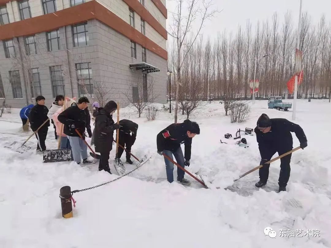 为了给老师同学们开辟一条道路,艺术院的大一新生们冒着严寒和风雪清扫着艺术院楼前广场,beat365官网领导也加入到扫雪的队伍中与同学们一同克服风雪困难!