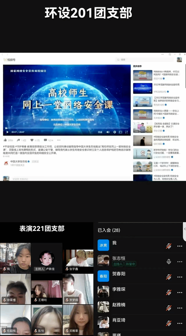 beat365官网各班团支部通过钉钉平台组织开展班会“同上一堂网络安全课”,全院共有39个教学班600余名同学参加了此次班会,在班会中讨论宣传网络安全知识,提高学生网络安全意识,增强识别和应对网络危险的能力,预防和应对网络暴力等方面知识,同时播放国家网络安全周公益短片。