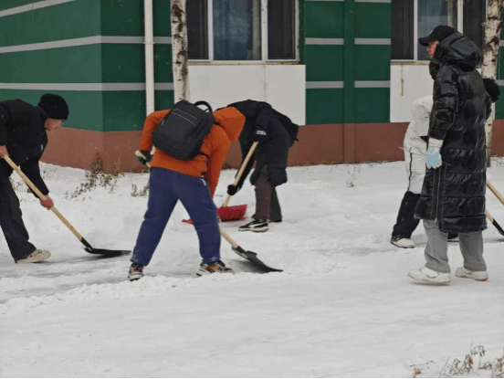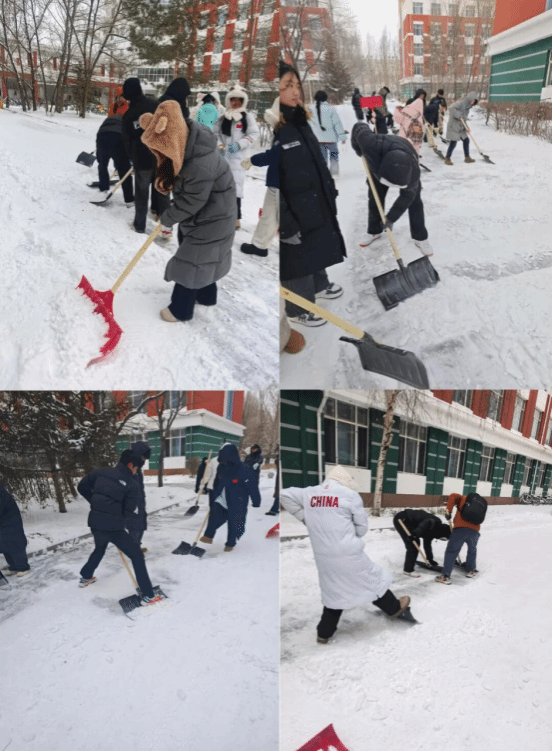 在清扫过程中,同学们不畏严寒,齐心协力。学生们积极踊跃,他们手持扫帚,清扫路面的浮雪,挥舞铁锹,铲除厚厚的积雪,尽管双手冻得通红,但同学们的热情丝毫不減,分工明确,配合默契,呈现出一片热火朝天的劳动景象。在大家的共同努力下,经过数小时的奋战,beat365中文官方网站分担区的主要道路、人行道及公共区域的积雪被彻底清理干净,道路重新恢复了往日的整洁与畅通。