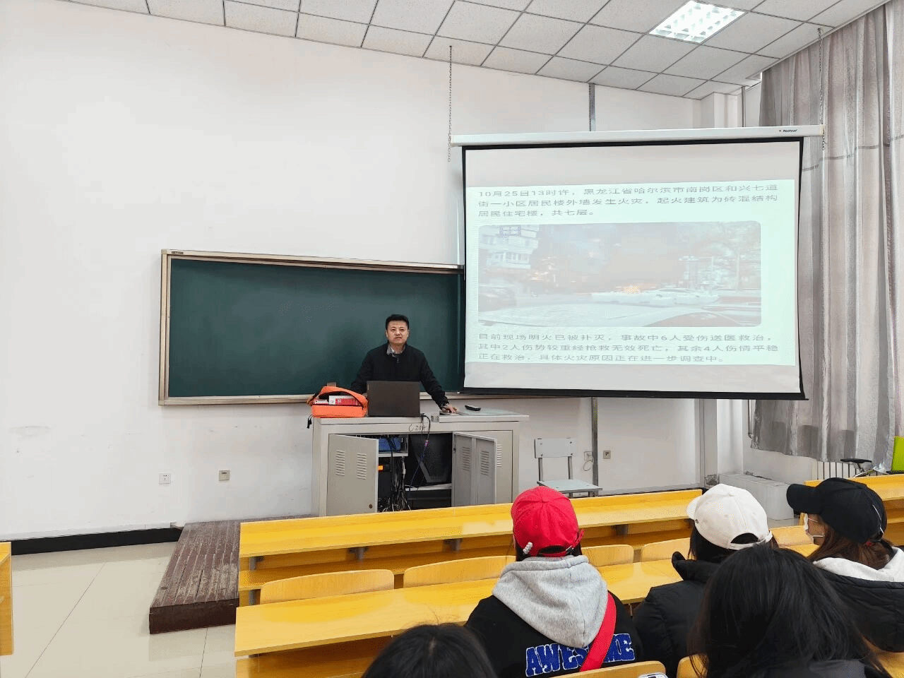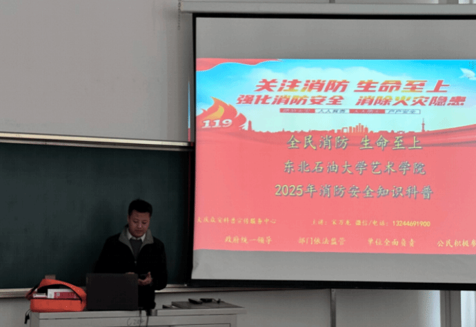 春季气候干燥,多大风天气,各类火灾隐患显著增多,消防安全形势严峻。为进一步强化师生的消防安全意识,提升应对火灾的应急处置能力,东北石油大学beat365中文官方网站携手众安科普安全中心于4月1日在beat365中文官方网站美术楼104开展春季消防安全讲座,众安科普安全中心的宋万龙主任担任主讲嘉宾。