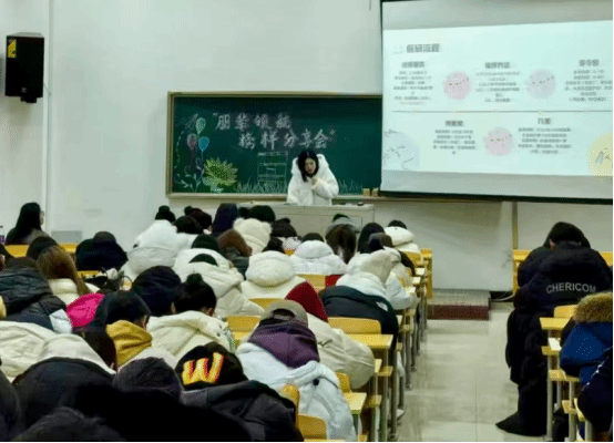 台下同学全神贯注,认真聆听学姐们的分享,不时低头记录重点内容,生怕错过任何一个宝贵的细节。互动环节更是气氛高涨,同学们积极踊跃地提出自己在学习和生活中遇到的问题,嘉宾们始终面带微笑,耐心解答,现场气氛温馨而热烈。