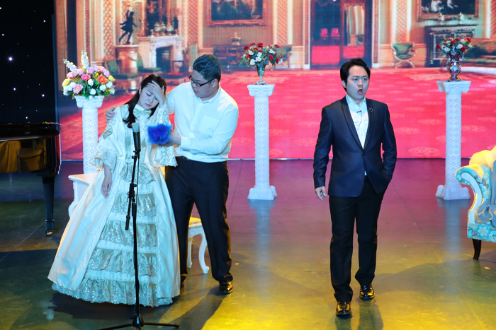 下半场在经典的意大利语歌剧《费加罗的婚礼》中拉开序幕,演员们精彩绝伦的表演令观众们啧啧称奇;歌剧《女人心》更是将观众们带回到了18世纪的那不勒斯;张鹏老师与鄂美伊老师再度联手为大家带来了《塞维利亚理发师》中的选段《真的是我么》,赢得了台下阵阵的掌声;由14级学生王建和赵玲俪为大家带来的《游吟诗人》选段《快回到山上》,精湛的演技使观众们仿佛与剧中人物一同经历着15世纪封建压迫下的吉普赛人的生活;最后一首《让我们远离巴黎喧嚣》再一次获得了如雷般的掌声,结束了下半场的所有外文曲目;最后在全场观众的强烈欢呼中,张鹏老师再次登台为大家带来了一首幽默诙谐的《你从哪里滚回来》,完美结束了整场音乐会。