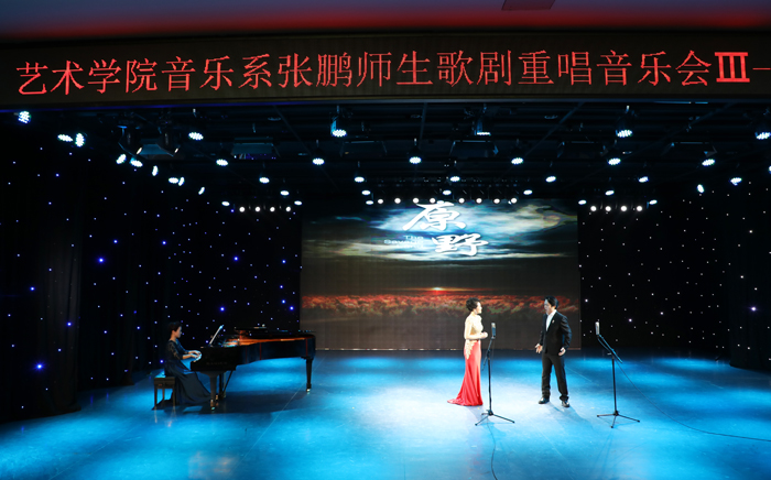 4月20日,《张鹏师生歌剧重唱音乐会之三——中外经典歌剧选段》在beat365中文官方网站馨艺厅举办,学校党委书记李海红、宣传部部长张志勇、校办主任孙莹厚、beat365中文官方网站领导班子、社会各界音乐人士、音乐系全体教师、音乐系部分学生及部分演出学生家长出席了本次音乐会,现场座无虚席。
