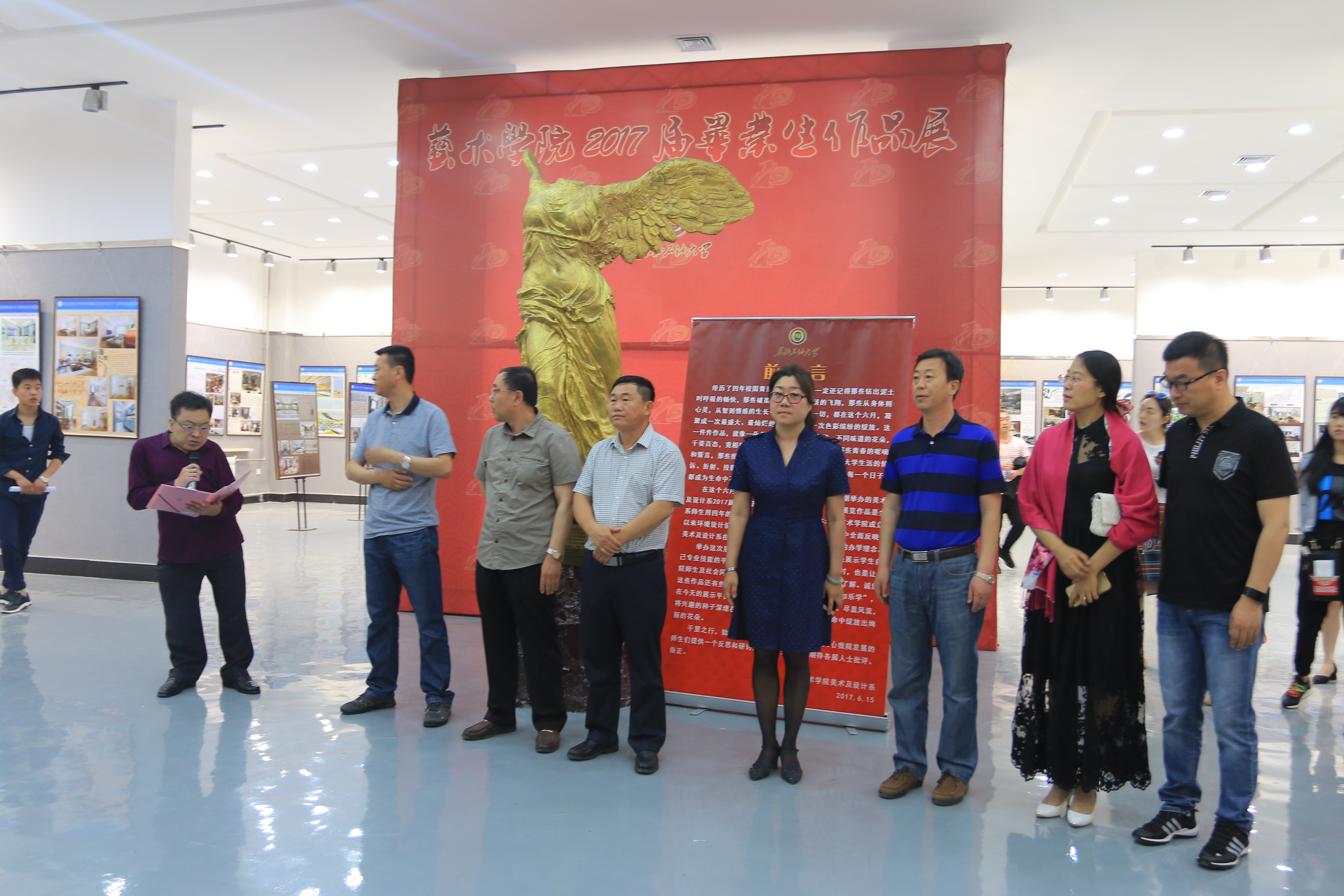 6月15日上午美术与设计系在beat365中文官方网站胜利女神厅举办了毕业设计作品展。此次展出了2017届毕业生100余幅作品,此次展出的设计作品技术功底好、专业基础强、创意新颖、设计内容紧跟时代步伐和前沿,展现了毕业生的学习成果和指导教师的专业水平,是近几年中毕业设计作品水平较高的一次。