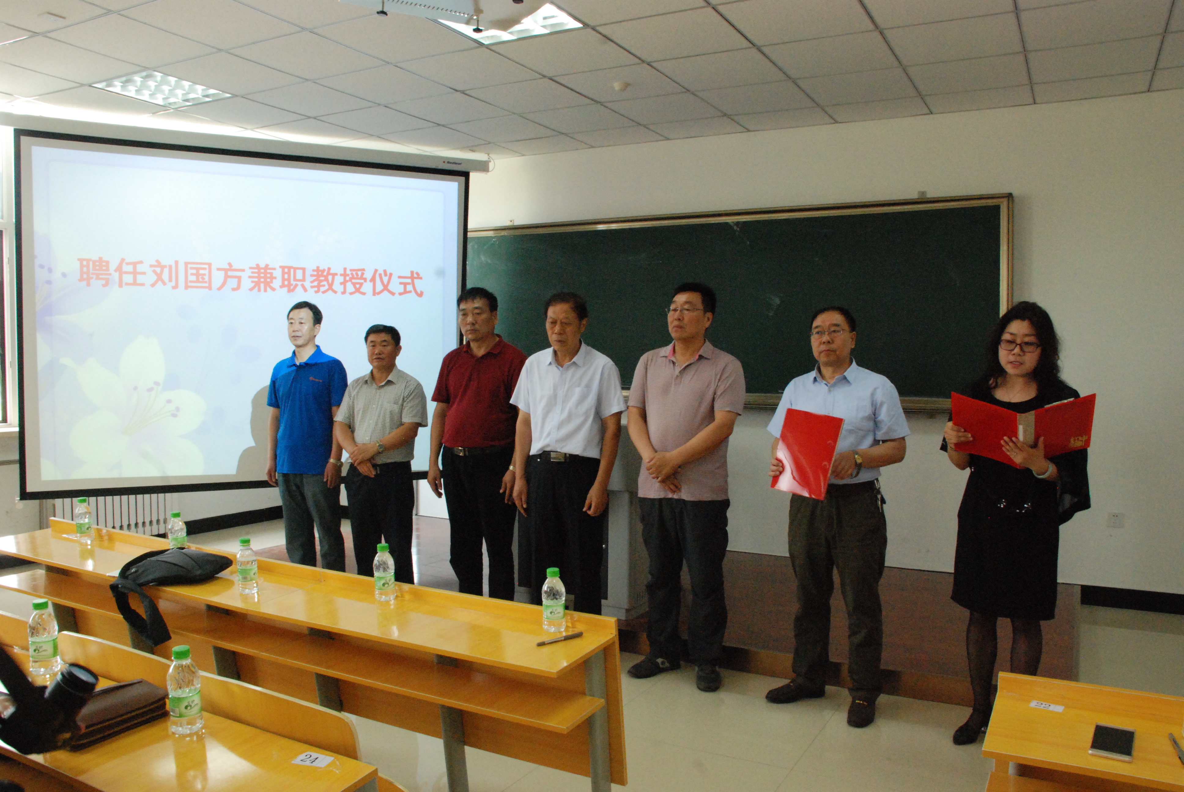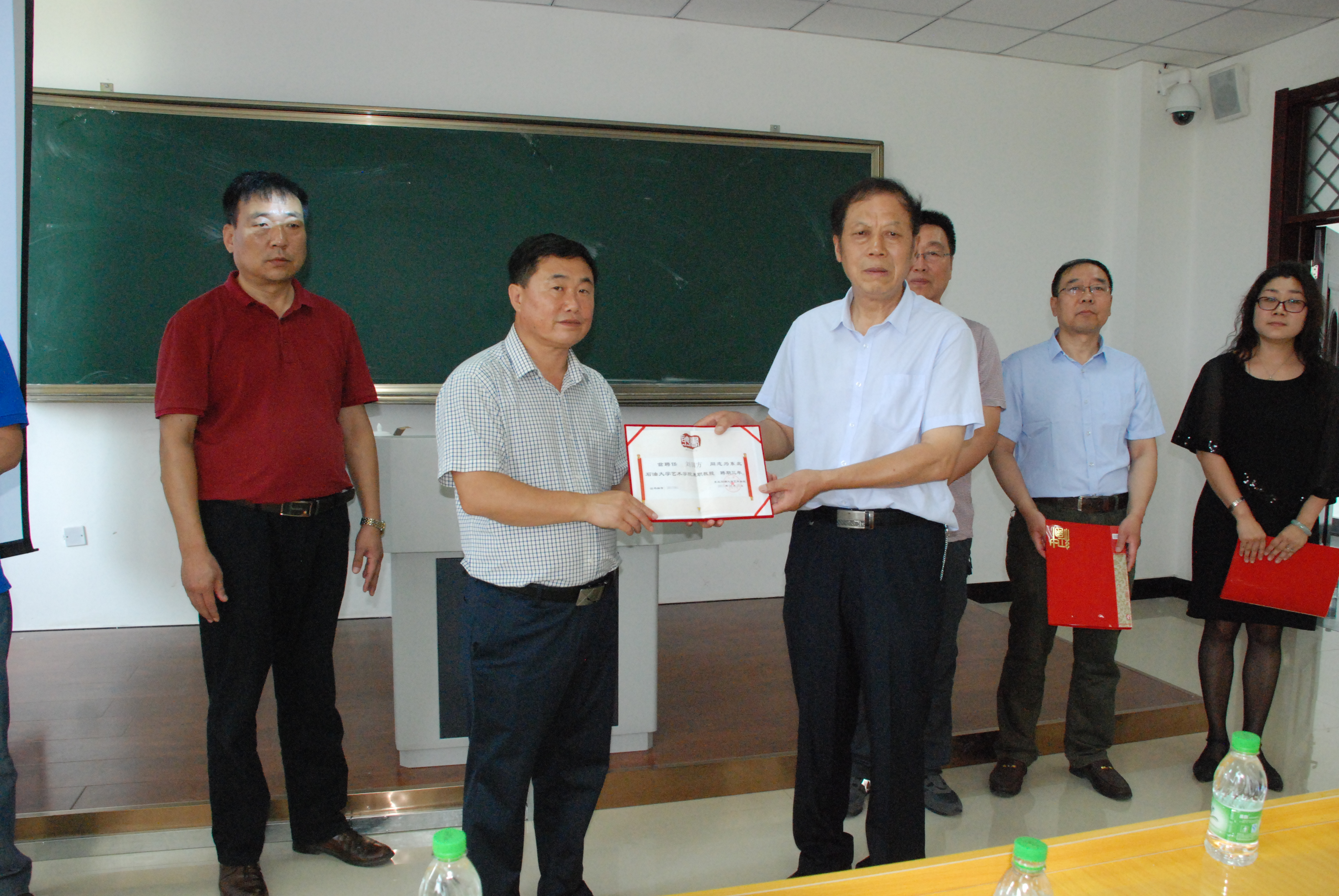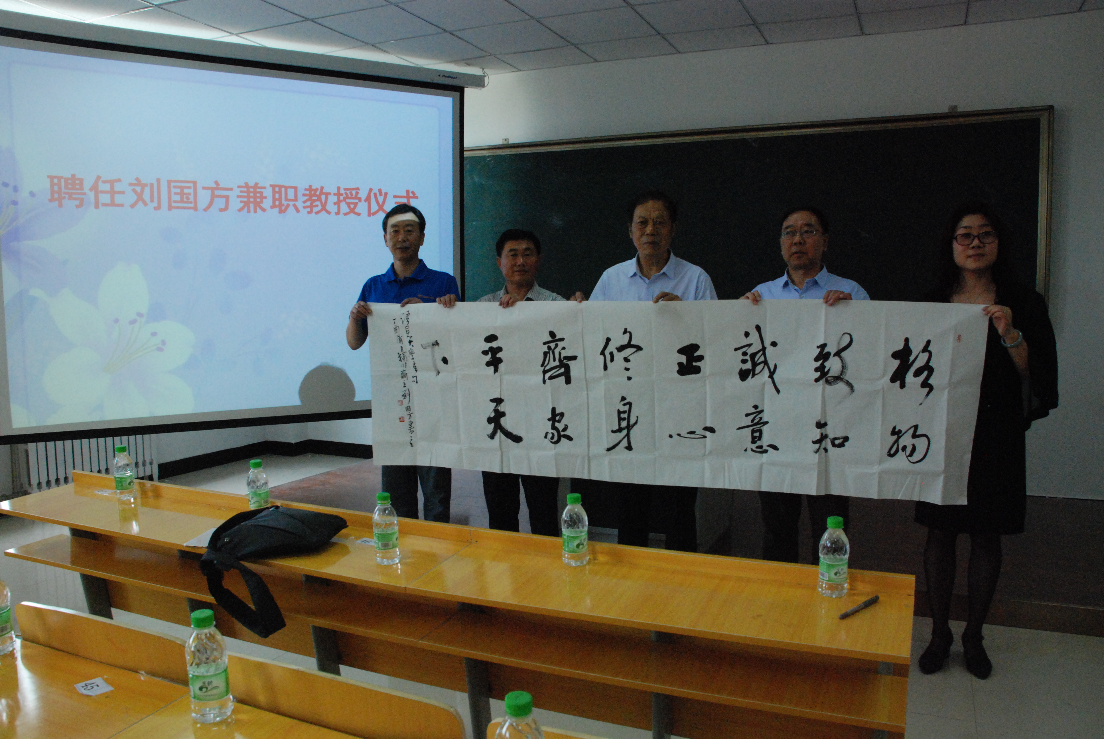 6月26日,beat365中文官方网站聘任河南书法家刘国方兼职教授仪式在美术楼204教室举行,校工会主席张斌、beat365中文官方网站领导班子及美术系师生参加了仪式,仪式由程显波书记主持。