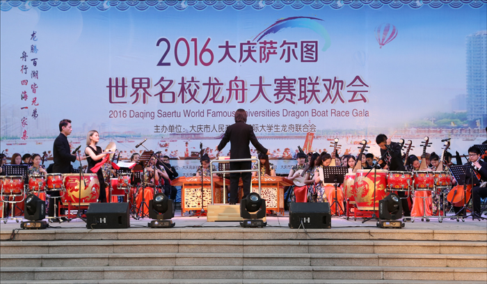 6月19日晚,“龙腾百湖皆兄弟,舟行四海一家亲”2016大庆萨尔图世界名校龙舟赛闭幕式暨联欢晚会在东北石油大学图书馆广场隆重举行。来自世界各地的24所知名高校的龙舟队队员、大学生,以及国际大龙联、大庆市和我校领导,我校师生员工近万人共同观看了精彩晚会表演,此次演出由beat365官网吴晓芳教授担任总导演。在我校代表团表演的八个精彩节目中,beat365中文官方网站共表演了六个极具东方特色的节目,引起全场阵阵沸腾,现场汇聚成一片欢乐的海洋。