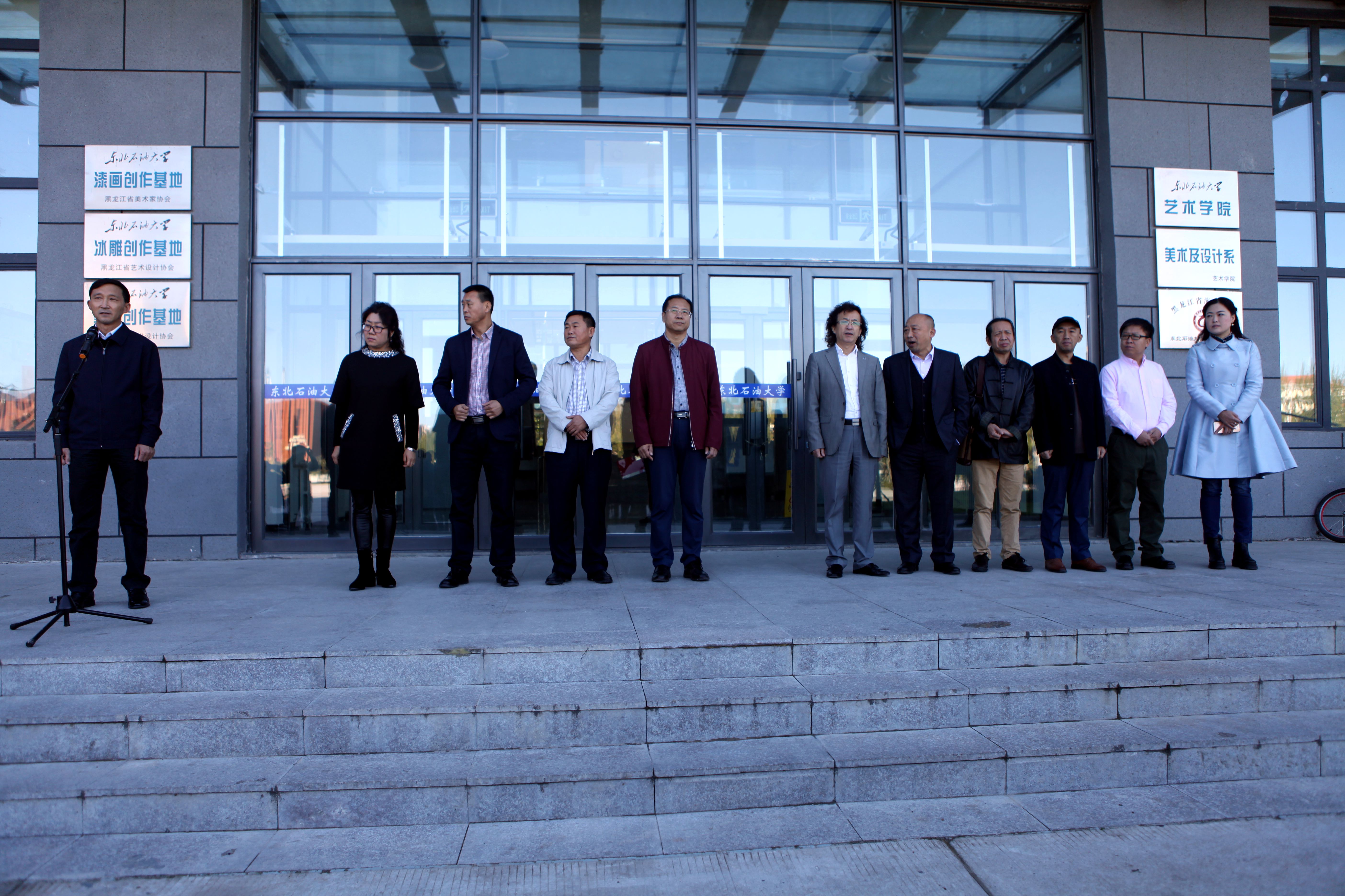 9月28日上午9点,2016黑龙江创意设计系列优秀作品东北石油大学巡展开幕式暨“黑龙江省艺术设计教育基地”授牌仪式在我校beat365中文官方网站举行,副校长蒋明虎、教务处处长张景富、省艺术设计协会会长张震甫、大庆师范学院美术与设计学院院长孙大力、副院长李方海、大庆艺术设计协会秘书长范志龙、东北石油大学工业设计系硕士生导师刘文庆及beat365中文官方网站领导与师生参加了此次活动。会议由beat365中文官方网站副院长王宝军主持。