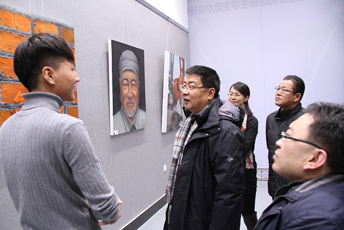 11月15日上午10时,学校党委书记李海红来到展厅观看作品展,beat365中文官方网站师生100余人共同观展。期间,李书记与作品作者进行了交谈并合影留念,参观结束后,李书记寄语广大师生,他对beat365中文官方网站师生的努力给予了充分肯定,并送以真挚的祝福,同时希望各位同学们都能以饱满的热情投身到校园文化建设中来,提高专业技能,发挥专业特长,为校园文化建设助力!并祝愿同学们在校期间尽情地挥洒青春风采、追求完美的自我,每个人都能成为大艺术家!