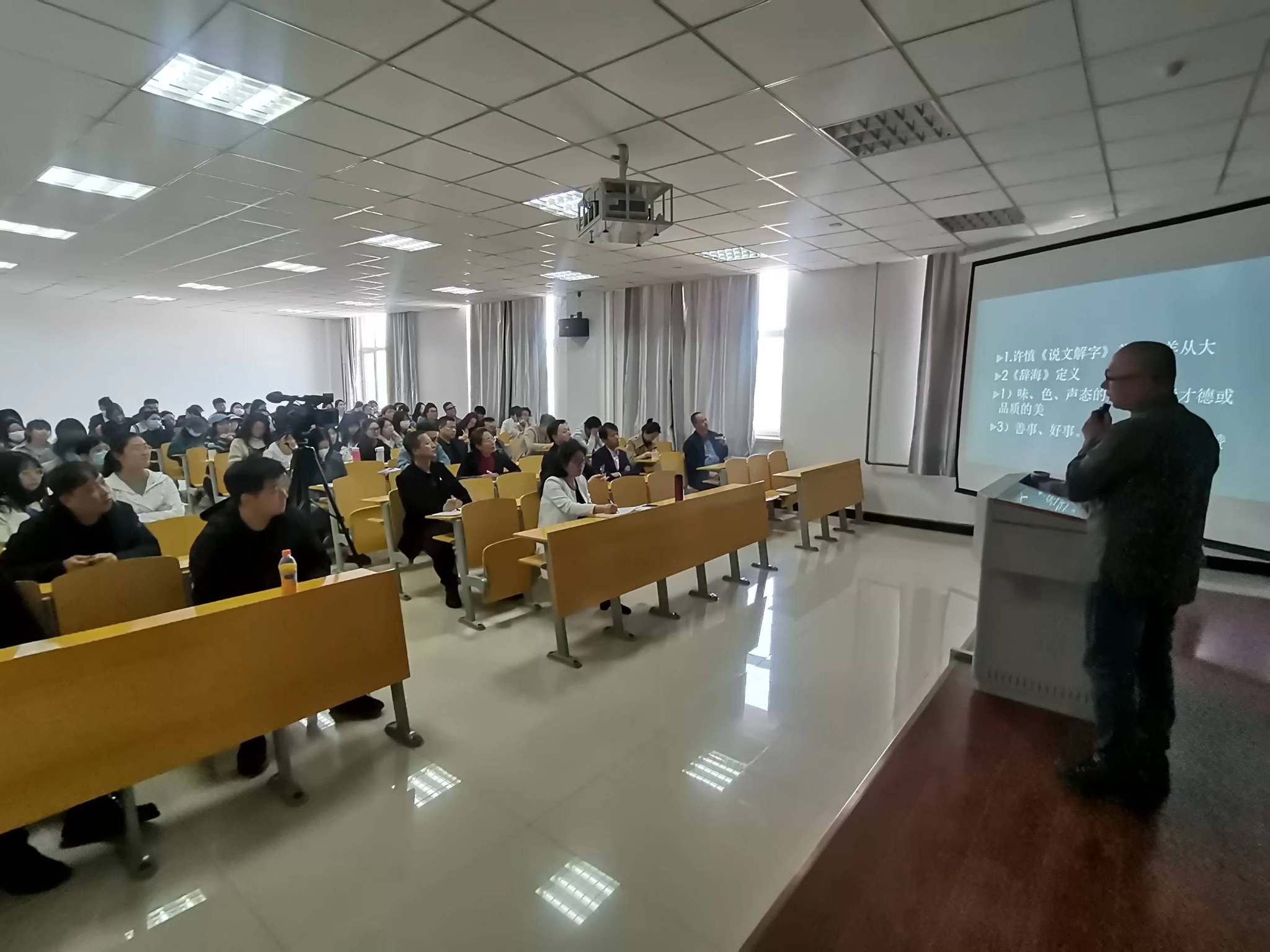 2023年5月10日下午1点30分,由beat365中文官方网站组织的美育讲堂正式开讲,讲座题目是“美育一二三------中央美术学院美育高研班学习分享会”。主讲人是美育中心李宝伟副主任。林庆华院长主持会议,beat365中文官方网站全体师生参加讲座。