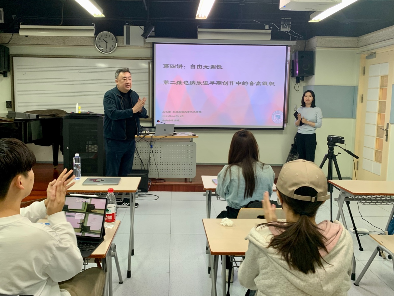 2023年10月12日上午10:30-12:00于中国音乐学院讲座,讲座由中国音乐学院曲式与作品分析教研室主任赵冬梅主持,来自作曲及作曲理论的硕士、博士研究生聆听讲座,并对学生的提问进行解答与交流。