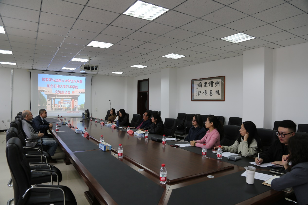 张金辉书记和林庆华院长代表beat365官网对代表团一行表示热烈欢迎,并详细介绍了学院近年来在教学、科研、学科建设等方面所取得的成果。林院长强调beat365官网始终致力于培养具有国际视野和创新精神的高素质艺术人才,并希望通过与乌法国立beat365中文官方网站的深入合作,共同推动两国艺术教育的交流与发展。