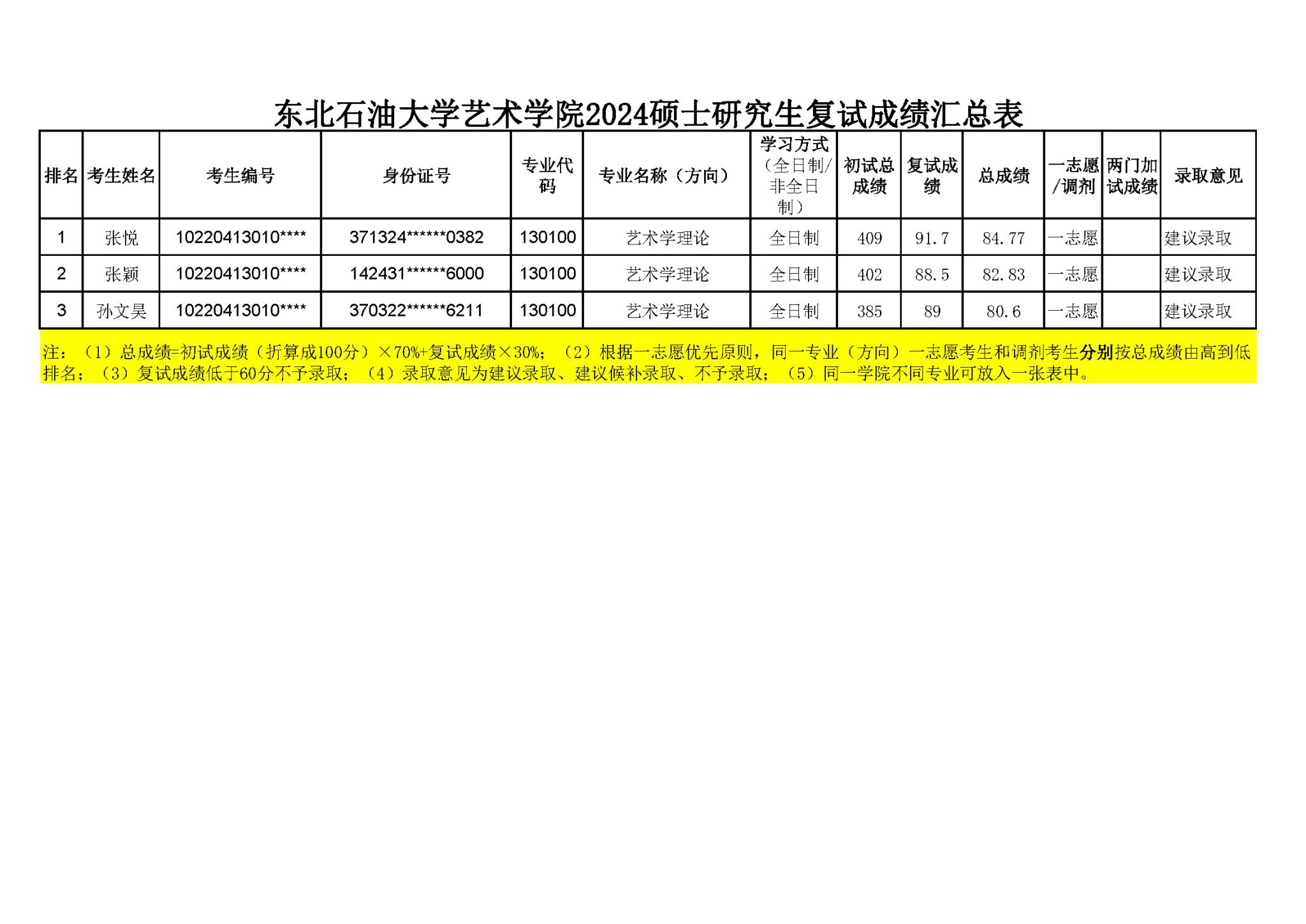 东北石油大学beat365中文官方网站2024硕士研究生复试成绩汇总表