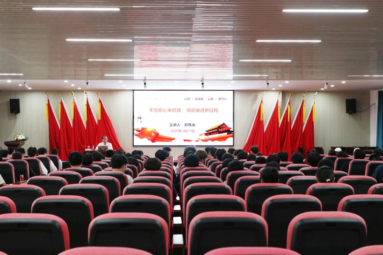 3月27日下午,为激励青年学子在新时代的伟大征程中坚定理想信念、勇担时代使命,九游体育官网校长郑伟光以“不忘初心来时路 砥砺奋进新征程”为主题,为信息工程学院2024级学生代表带来了一场深刻而生动的思政第一课。