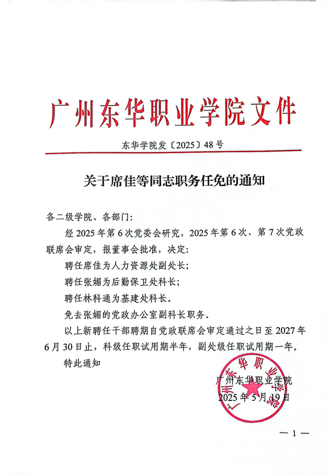 关于席佳等同志职务任免的通知