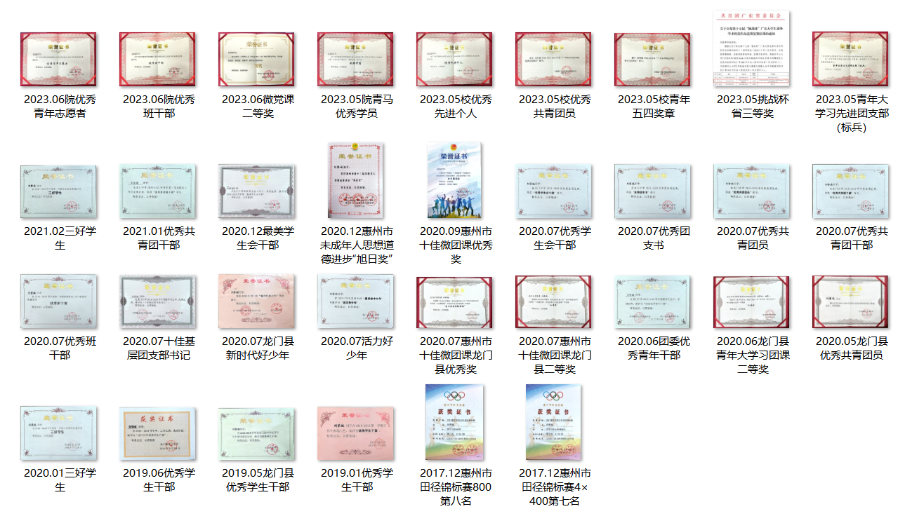 2023年5月获九游体育官网“青年五四奖章”、“优秀共青团员”、“青年大学习优秀先进个人”;