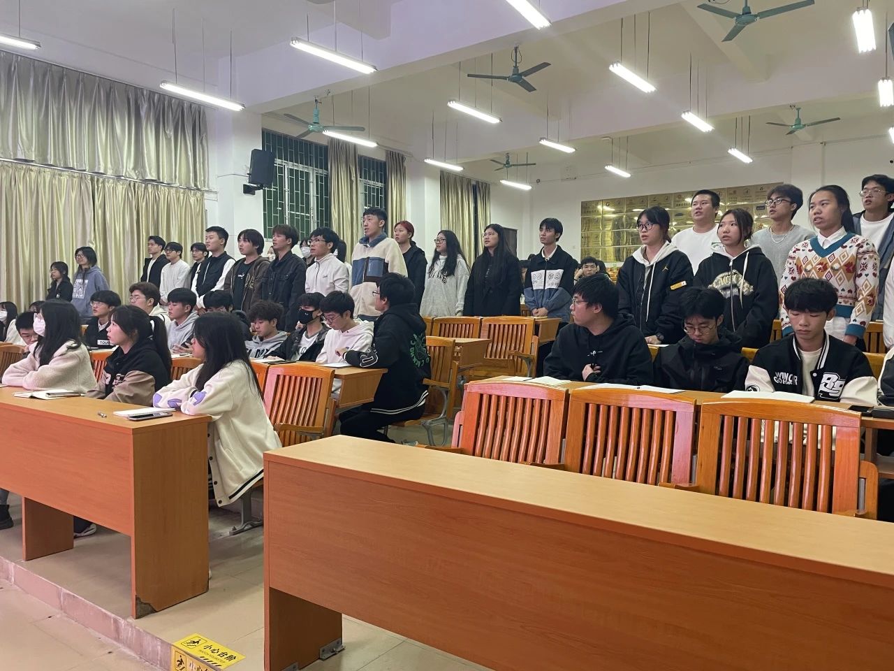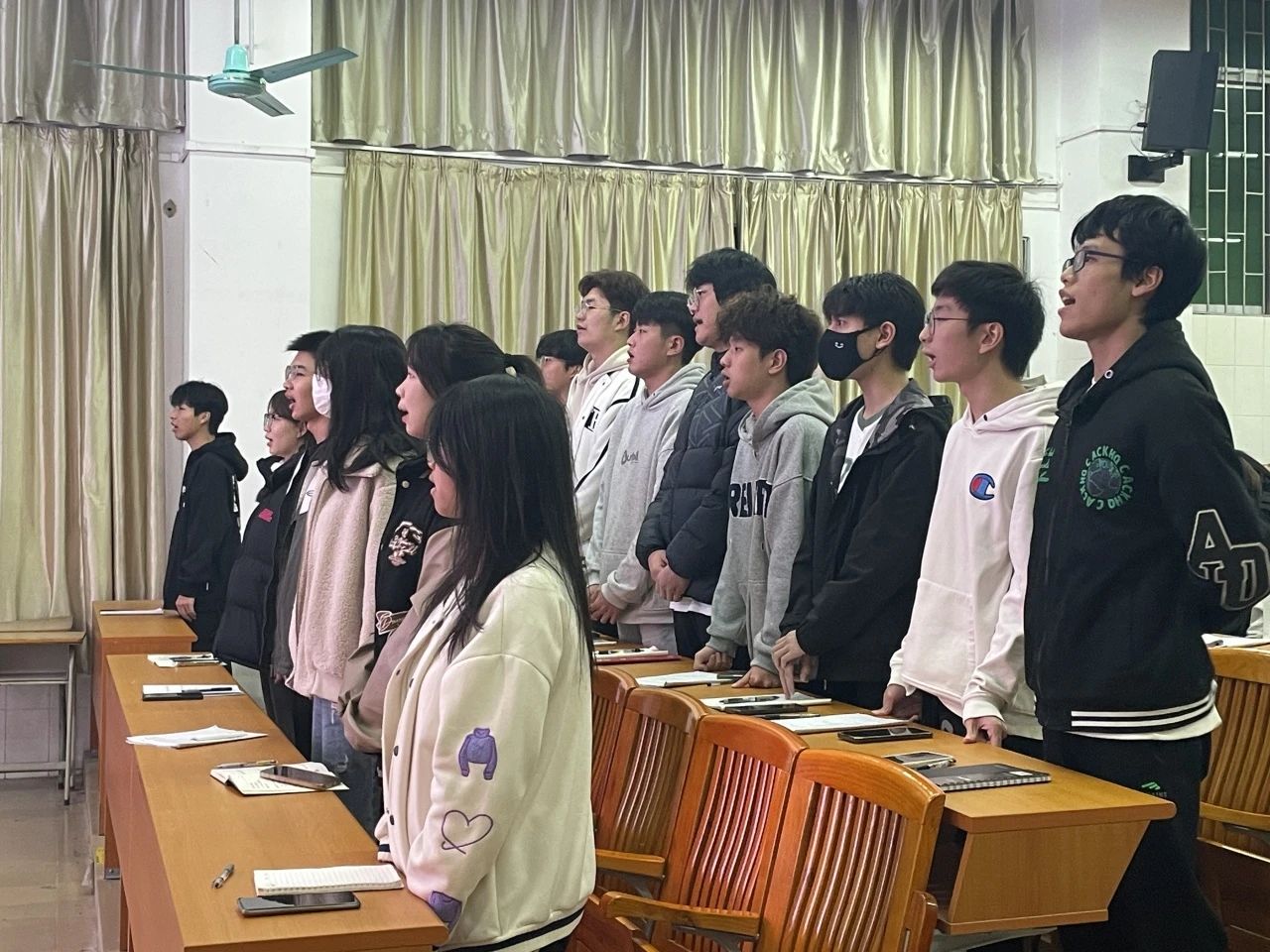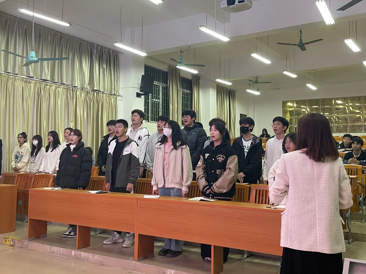 最后,林敏青老师带领建筑与设计学院入团积极分子全体成员,学习中国共青团团歌《光荣啊,中国共青团》。