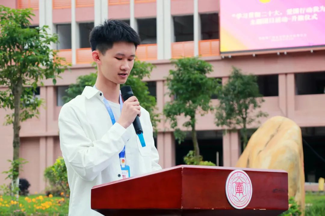 学生代表张涛在国旗下发言,他回顾104年前无数爱国青年投身其中的五四运动,以习近平总书记的寄语解答何为新青年,号召同学们继续发扬五四精神,爱党爱国爱校,为学校高质量发展贡献青春力量。