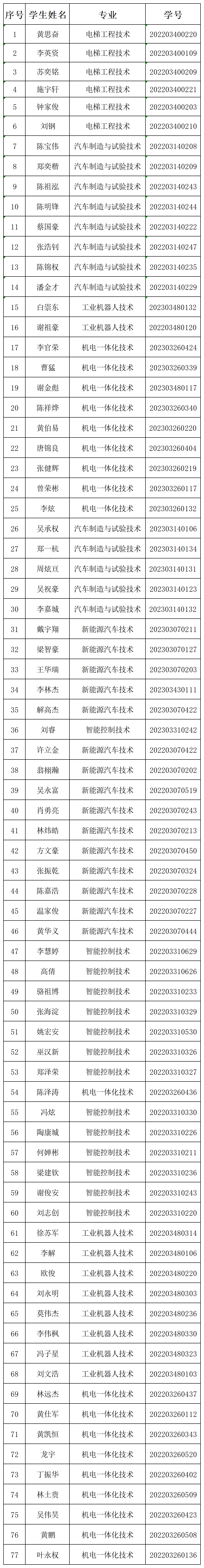 智能机电学院 | 2023-2024学年国家励志奖学金名单公示