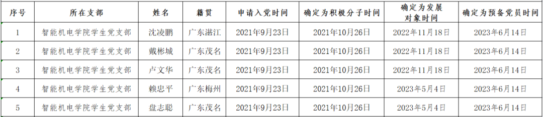 关于拟同意沈凌鹏等5位同志按期转正的公示